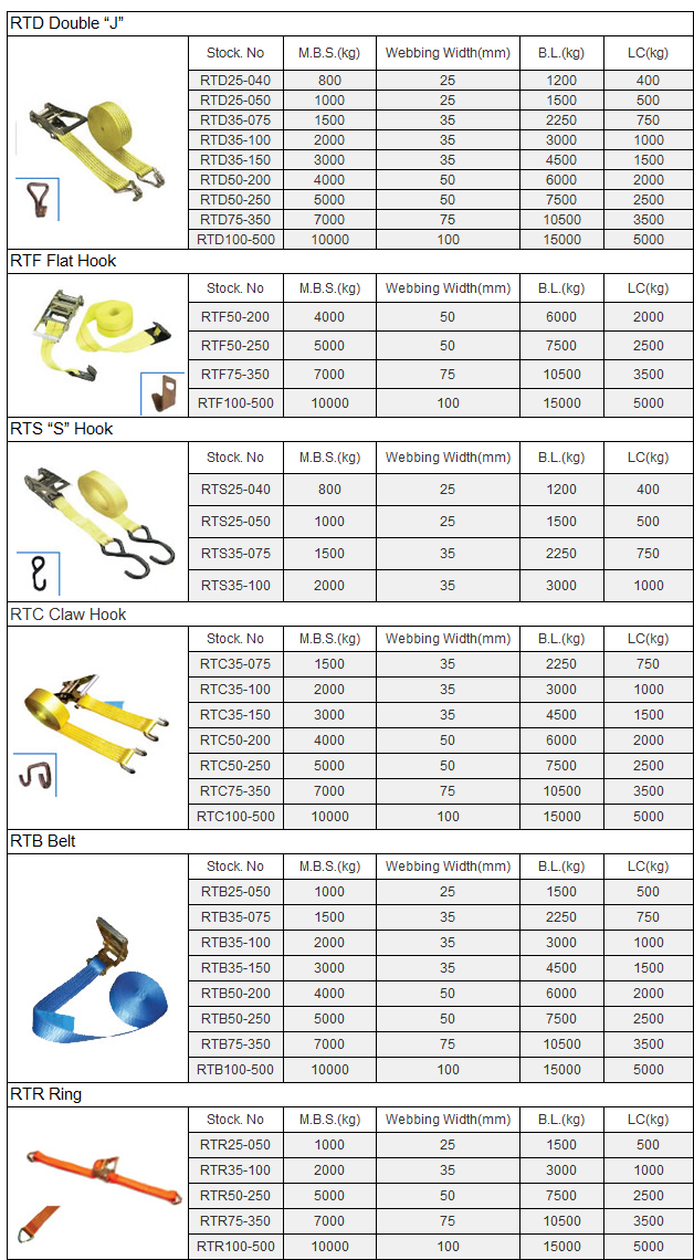 Ratchet strap is composed with webbing strap, ratchet and end fittings. The end fittings are