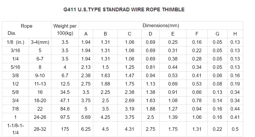 G411 U.S Type Standard Galvanized Wire Rope Thimbles